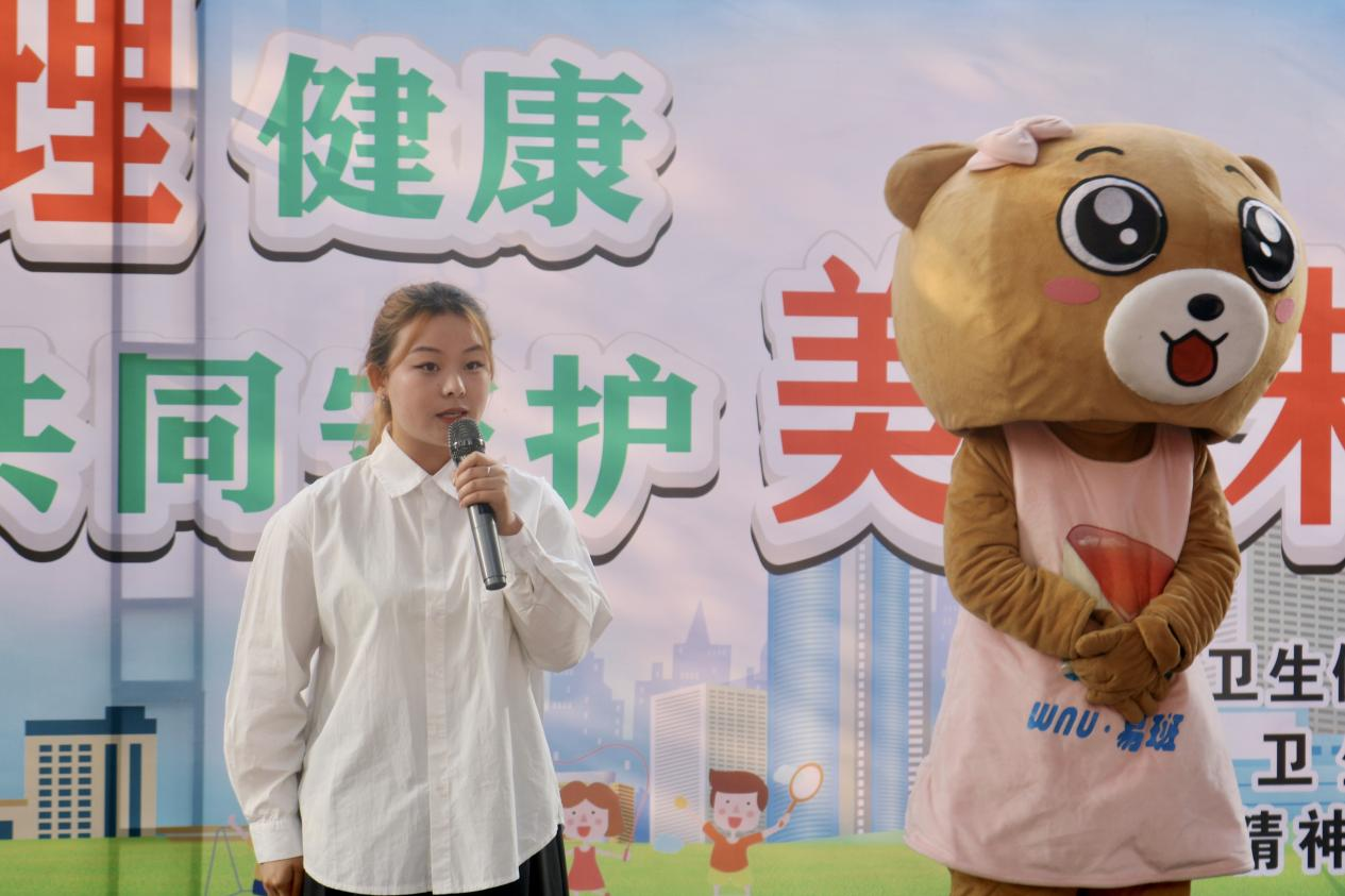 10月10日上午,我校联合渭南市精神卫生中心、陕西铁路职业技术学院、渭南职业技术学院在渭南市中心广场举办“促进儿童心理健康,共同守护美好未来”为主题心理健康“快闪”活动。音乐学院通过文艺表演的形式,附属医院通过设立咨询义诊台,发放精神健康教育处方和心理健康知识读本的形式,大学生心理健康协会以手语操的形式,向社会民众普及心理健康和精神卫生防治知识,彰显大学生的阳光心态,青春活力。