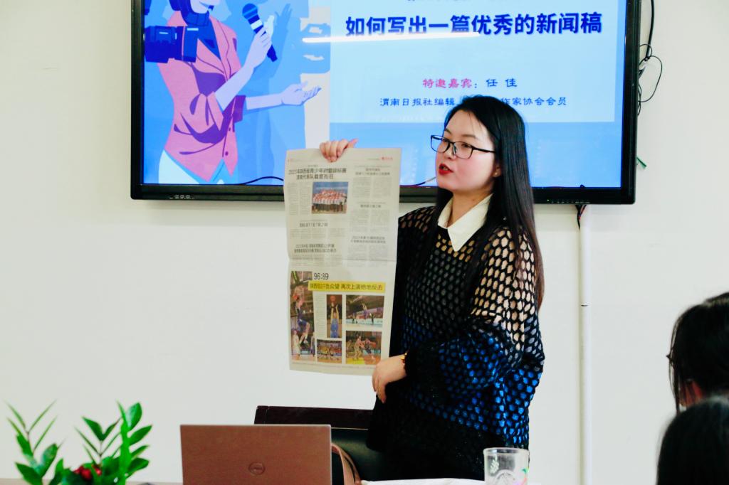 接下来,任佳从三个方面回答了“如何写出一篇优秀的新闻稿”这一问题。一是要注重创作过程,“脚上沾有多少泥土,心中就沉淀多少真情”,要深入现场、仔细观察、注意细节,做到有故事、有温度、有线索。二是要注重作品亮点,提升新闻敏感性。选题上要以“小切口体现大主题”,标题是报道的眼睛,要做到准确简洁、亮点突出、反映核心。三是注重后期处理,要做到认真修改、精益求精。答疑过程中,任佳以《好新闻的样子》《渭南日报》为例,解析如何提炼标题、如何做好后期修改润色,并现场指导同学们对两篇新闻报道进行了修改。
