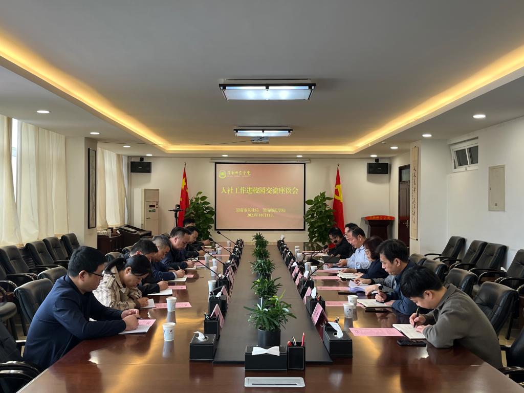 10月11日上午,渭南市人力资源与社会保障局党组成员、副局长蔚文新一行9人来我校开展人社工作进校园交流座谈会。我校党委副书记汪勇、副校长王菊霞出席会议,学生工作部(处)、组织部、教务处、经济与管理学院相关负责人参加会议。学生工作部(处)长田耿辉主持会议。