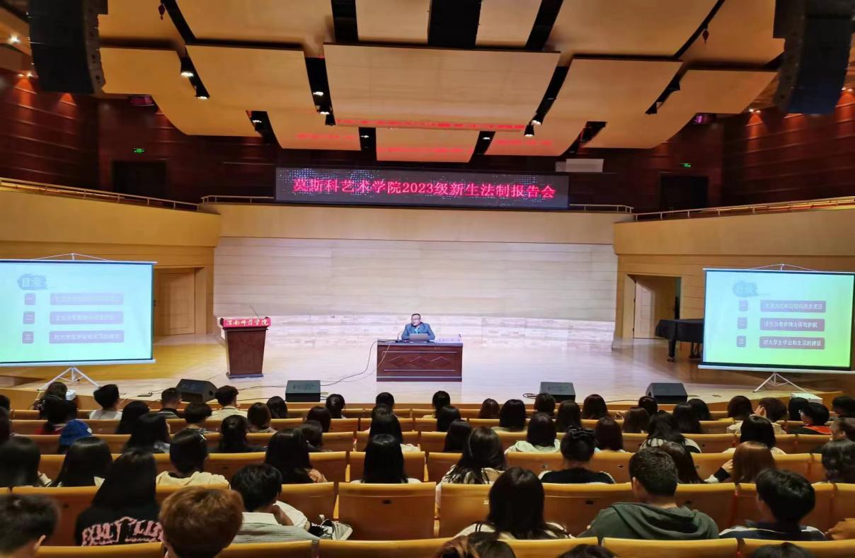 为增强广大学生法治观,营造浓厚“学法、守法、遵法、用法”校园氛围。10月15日,莫斯科艺术学院邀请屈琦教授为2023级新生开展主题为《让法治成为生活方式和信仰》法制报告。莫斯科艺术学院党总支书记孟波、副书记叶晓燕、全体辅导员及2023级新生参加本次报告会,会议由叶晓燕主持。