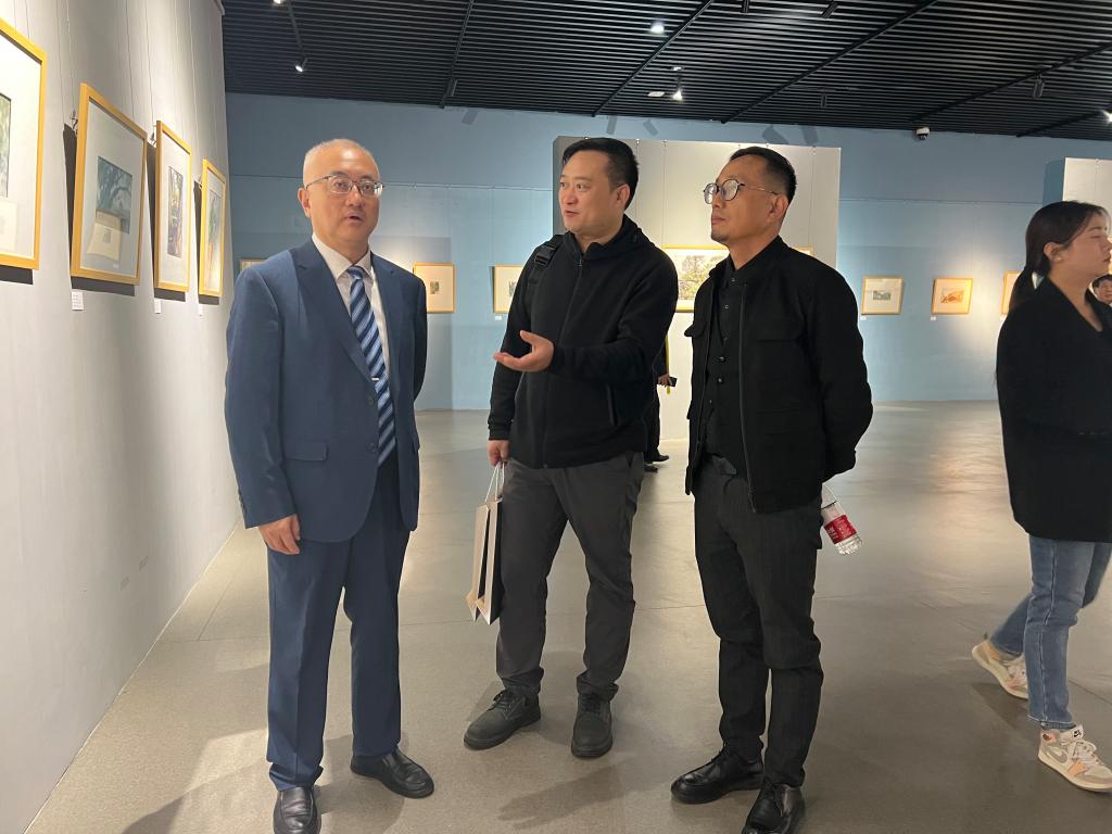 袁亮还参加了由黄陵县主办的“大美寻根——黄陵县水彩风景写生展”开幕式,并参观了画展。观展期间黄陵县副县长殷小彤介绍了此次展览意义,与袁亮书记商讨了校地产学研合作基本事项,希望进一步和我校深入加强合作与交流。通过观展袁亮强调在培养学生过程中要加强校地合作,进一步挖掘地方文化,充分利用地方自然资源,开拓校外美术资源,加强学生艺术实践能力的培养,扩大学校的影响力。