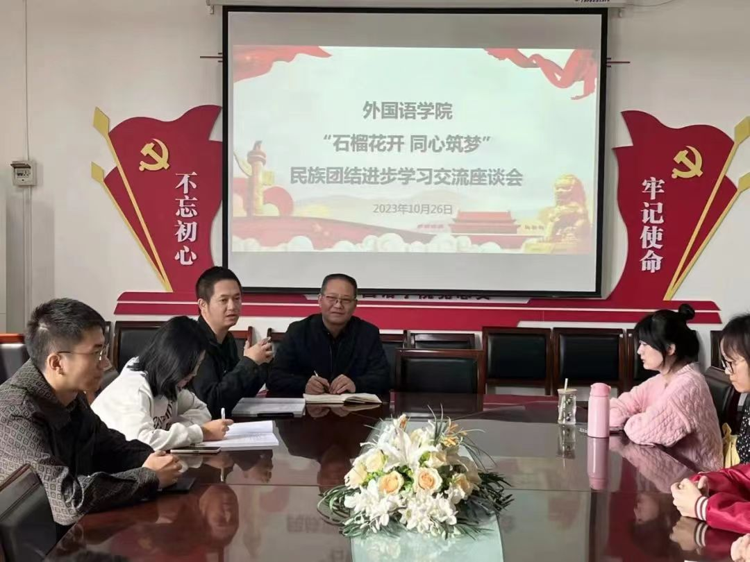 外国语学院召开“石榴花开 同心筑梦”民族团结进步学习交流会、组织观看民族团结影片