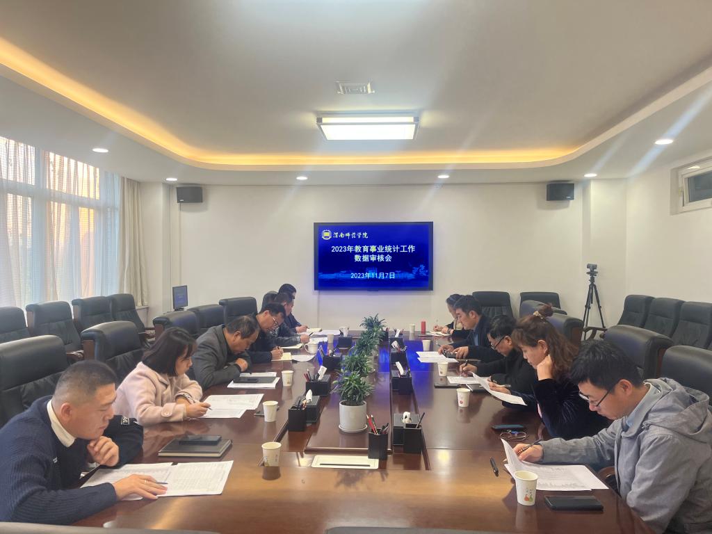 学校召开了2023年教育事业统计数据审核会议。学校党委委员、副院长、教育事业统计工作领导小组组长曹强出席并讲话。党政办公室主任张勤恳主持会议。