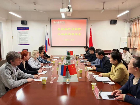 11月8日下午,莫斯科艺术学院召开外籍教师座谈会。学校党委委员、副校长王菊霞,莫斯科艺术学院处科级干部、外籍教师、专业负责人参会。会议由莫斯科艺术学院副院长高红菊主持。