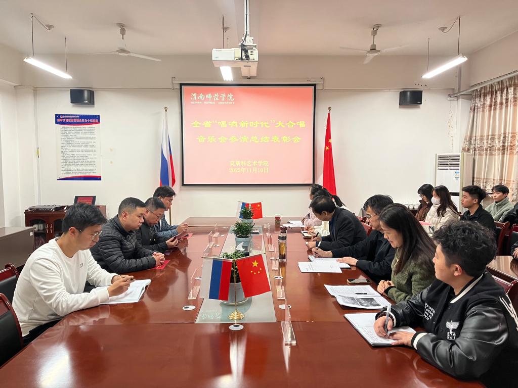 11月10日下午,莫斯科艺术学院对参演10月25日陕西省委教育工委、教育厅主办的“唱响新时代”陕西省大中小学合唱音乐会师生进行总结表彰。莫艺党总支书记孟波、执行院长席景奇、党总支副书记叶晓燕、副院长张辽艳、办公室主任高晶、学工办副主任段菲、音乐专业负责人王琦珩、合唱指挥教师张浩,器乐教师金鑫及全体参演学生参加此次会议,会议由王琦珩主持。