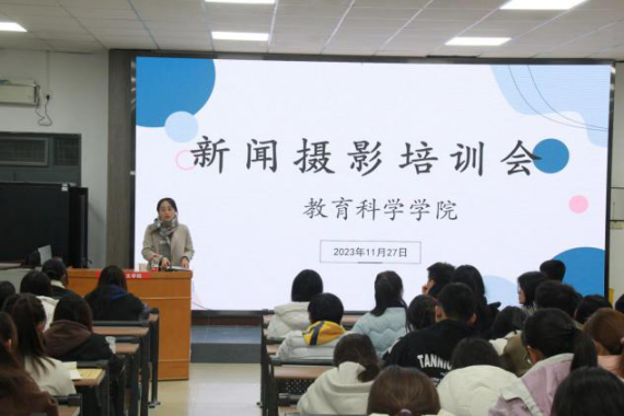 11月27日晚,教育科学学院特邀党委宣传部全媒体中心教师于占豪为学院学子做新闻摄影专题培训。教育科学学院团委负责人谭宗英,辅导员王浩龙、梁林娟,学生分会各部门负责人和全体新媒体工作人员,各专业学生代表共百余人参加培训。培训会由教育科学学院党总支副书记马雷蕾主持。