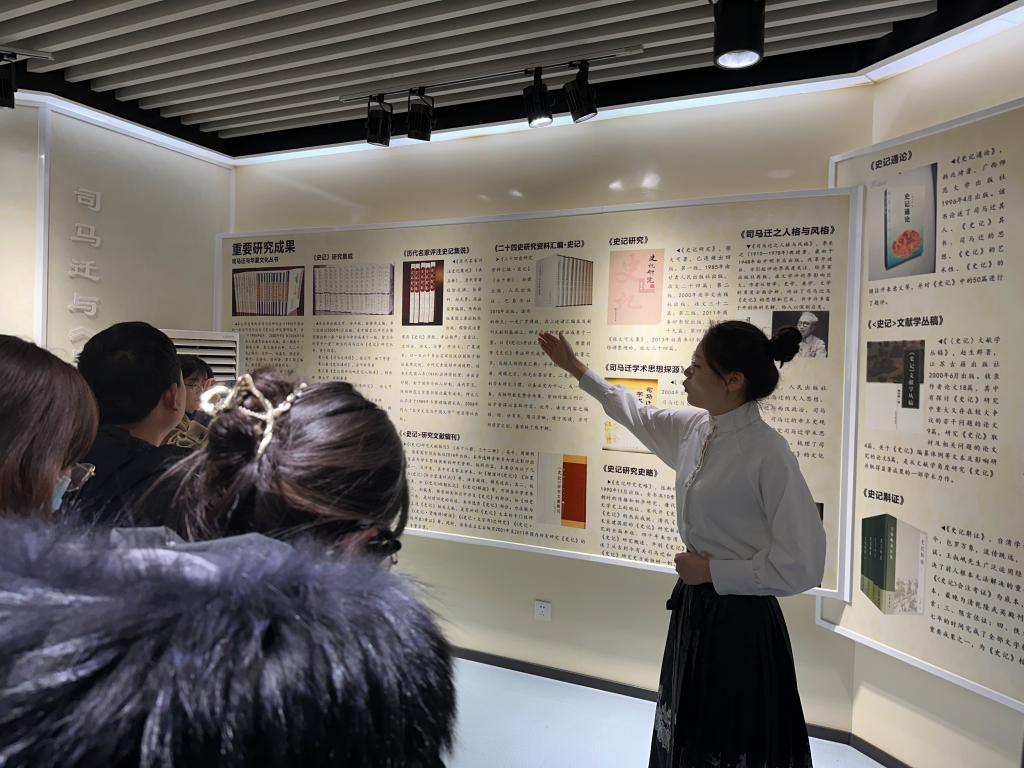 历史221班潘雨彤同学首先为大家介绍了司马迁与《史记》研究展览馆,对司马迁与《史记》研究团队、交流平台、研究成果、版本点校注译成果、我校《史记》研究重要成果、海内外研究学人等内容进行讲解。
