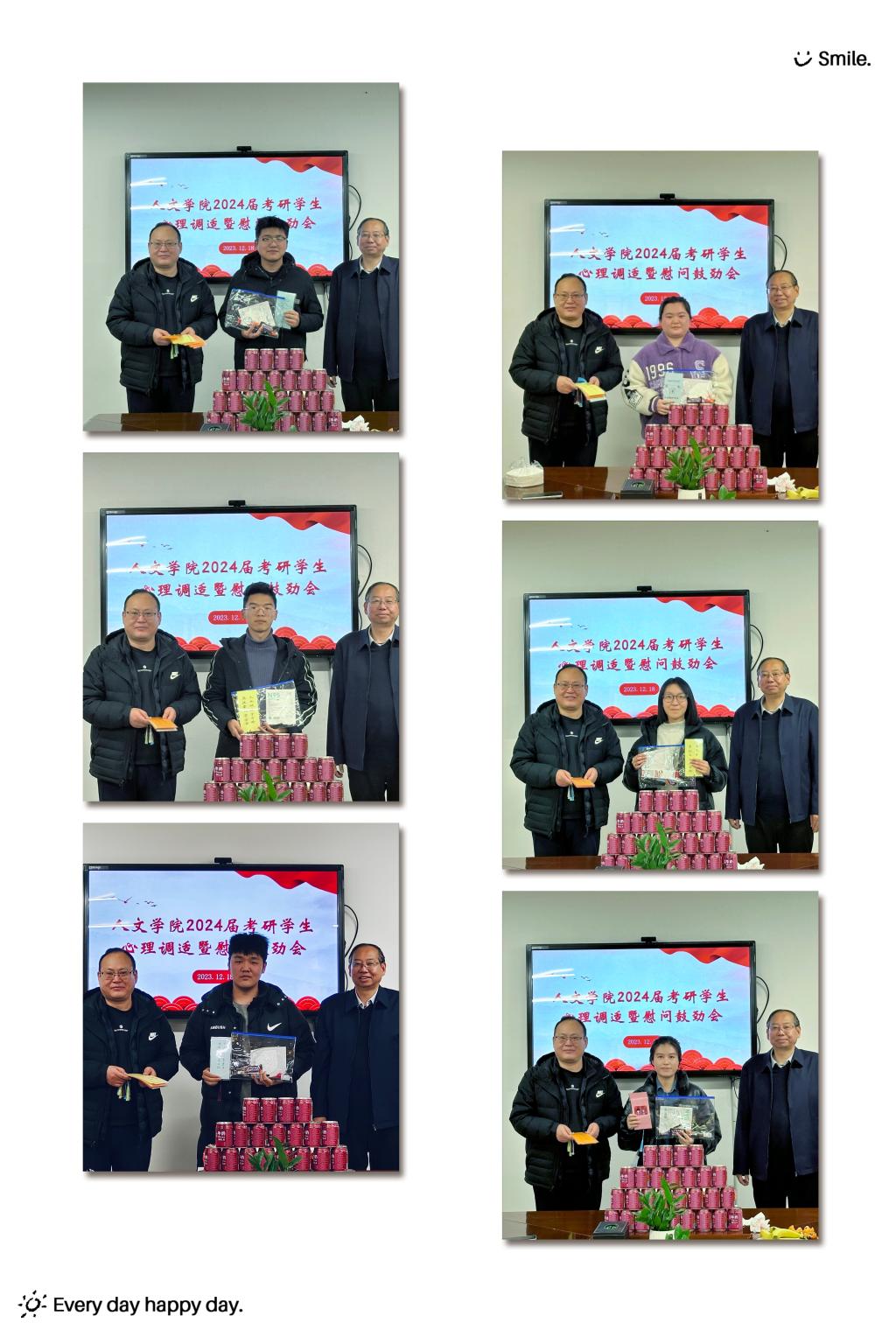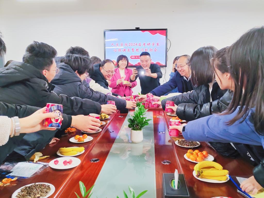 12月18日下午,人文学院召开2024届考研学生心理调适暨慰问鼓劲会。该院领导班子、全体辅导员以及2024届考研学生代表参会。会议由该院党总支副书记、副院长张晶主持。
