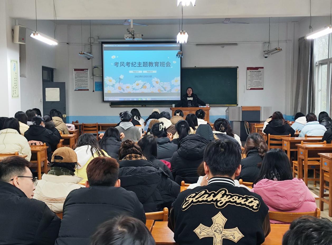 为了进一步加强学风建设,严肃考风考纪,端正学生的学习态度和行为规范,树立正确的诚信考试观念,营造良好的考试氛围,教育科学学院于2023年12月上旬组织各班开展了考风考纪教育主题班会。