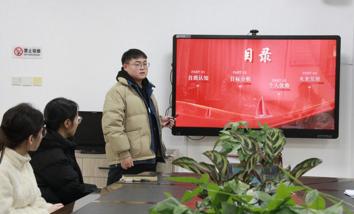 随后,苏家越现场展示了自己在校级决赛中的发言过程,通过情景再现加深了同学们对职业规划大赛的了解。