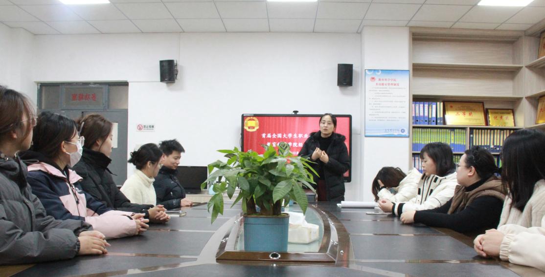 12月20日下午,教育科学学院举办首届大学生职业生涯规划大赛经验分享会。我院参加校级决赛的苏家越、石函瑜两位同学受邀为同学们分享自己的参赛经验和心得体会,帮助同学们加深对这项竞赛的了解。学院全体辅导员及学生代表参加此次分享会,会议由党总支副书记马雷蕾主持。