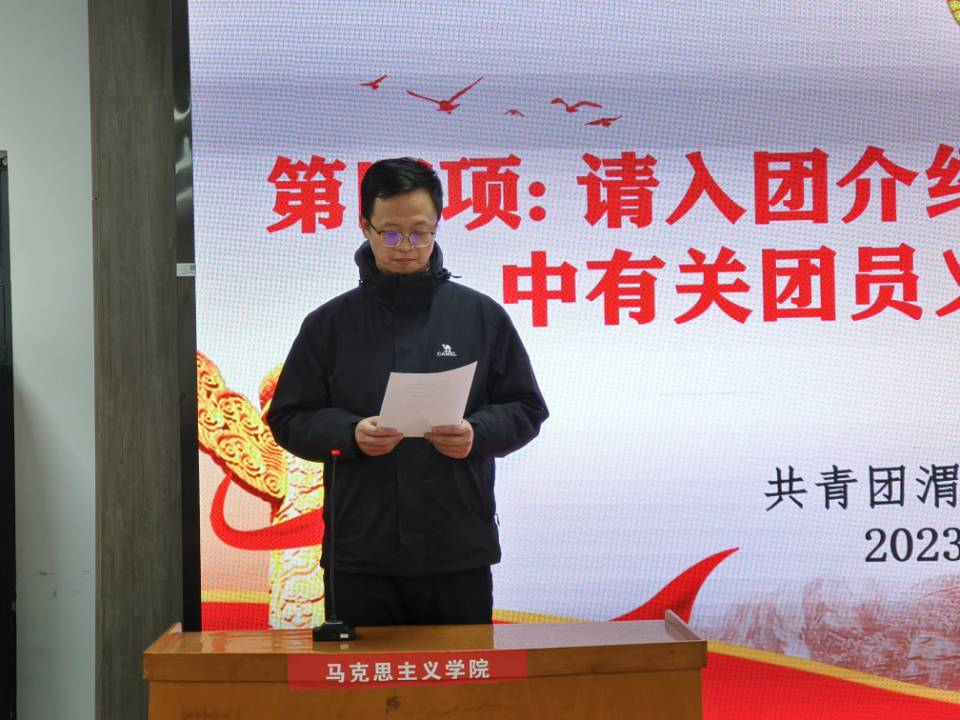 入团介绍人潘涛宣读《中国共产主义共青团章程》中有关团员义务和权利的条款,再次明确团员的责任与使命。鼓励团员们积极承担责任,正确行使权利。