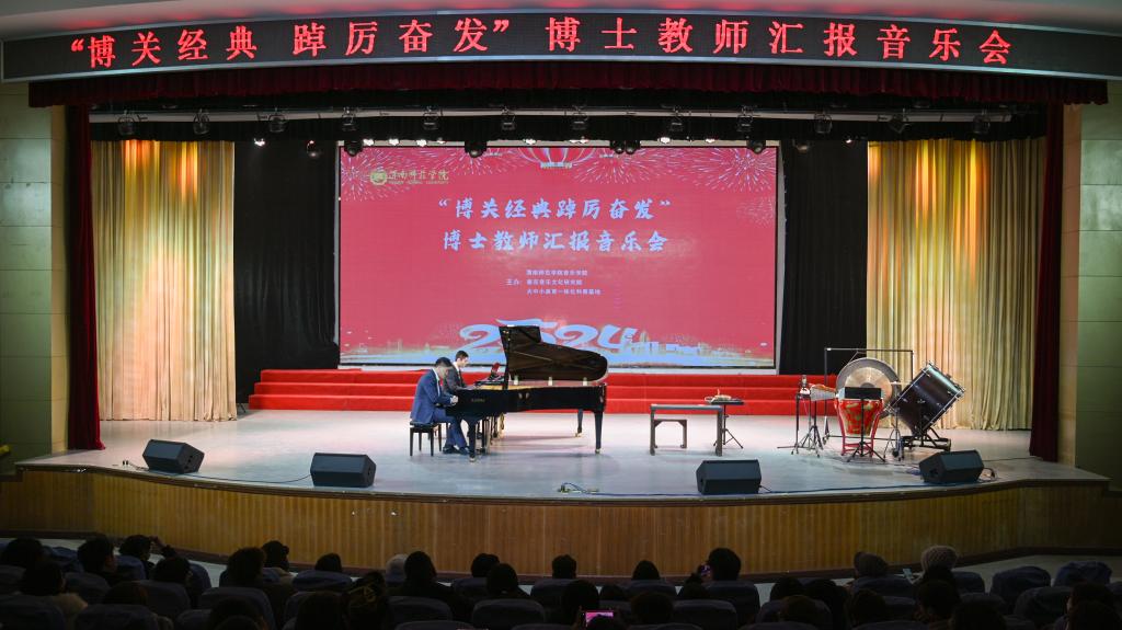 1月3日19:30,音乐学院在陶然楼演艺厅成功举办了“博关经典踔厉奋发”博士教师专业汇报音乐会。副校长曹强,音乐学院党政领导以及三百余名师生现场聆听了音乐会。