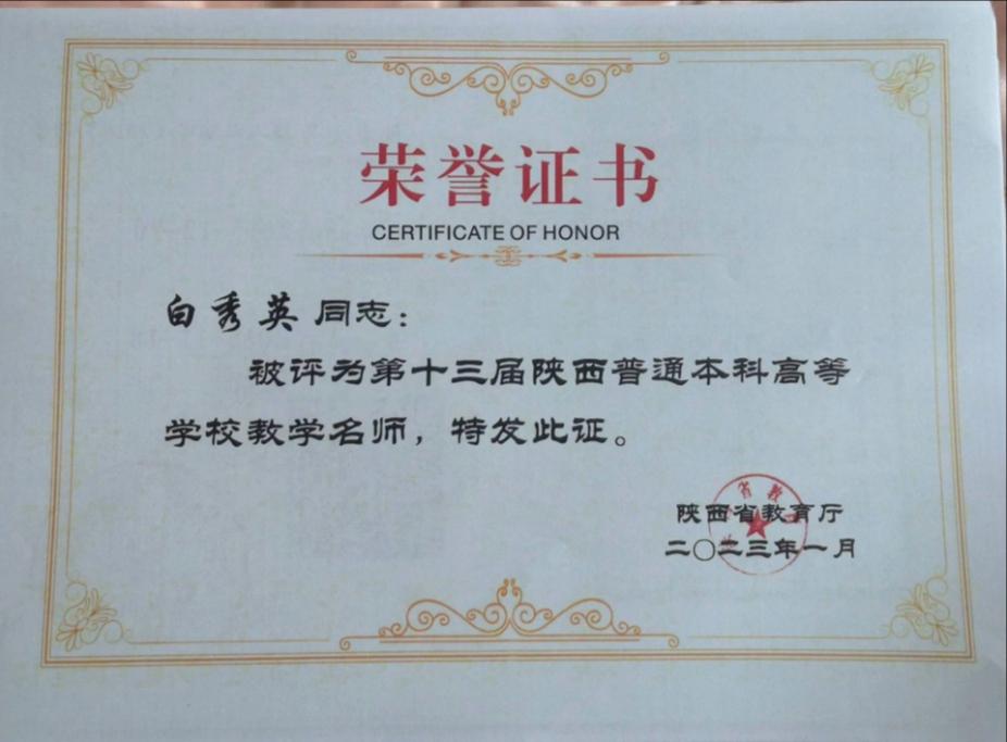2023年度,学院教师以立德树人为己任,争做大先生。1名教师获得陕西省教学名师;1名教师获得全国高校物理基础课程青年教师讲课比赛二等奖。