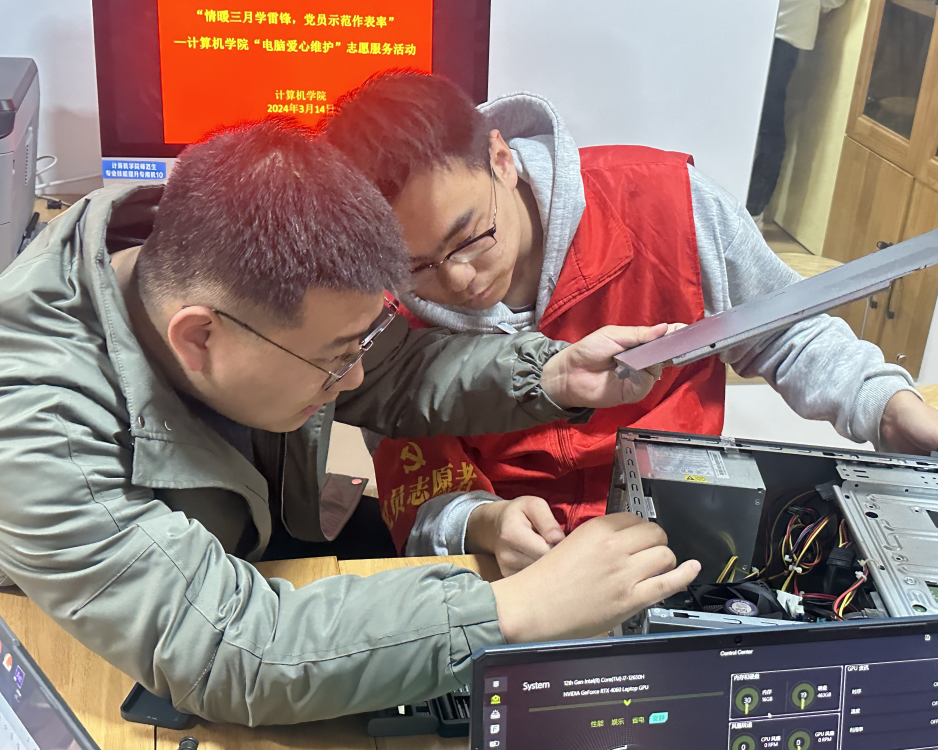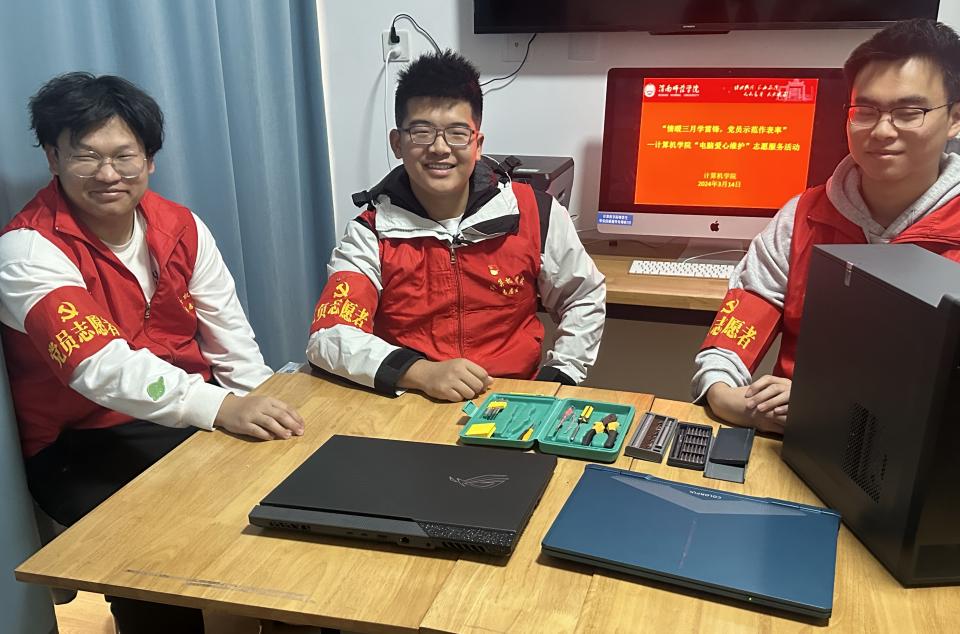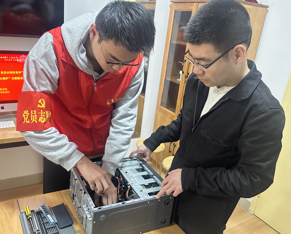 3月14日至15日,计算机学院师生融合第一、第二党支部开展“情暖三月学雷锋 党员示范作表率”电脑爱心维护一站式志愿服务活动,学院党总支书记武楠、党总支副书记张俊娜、师生融合党支部书记李雷玮、薛飞及部分学生党员参加活动。