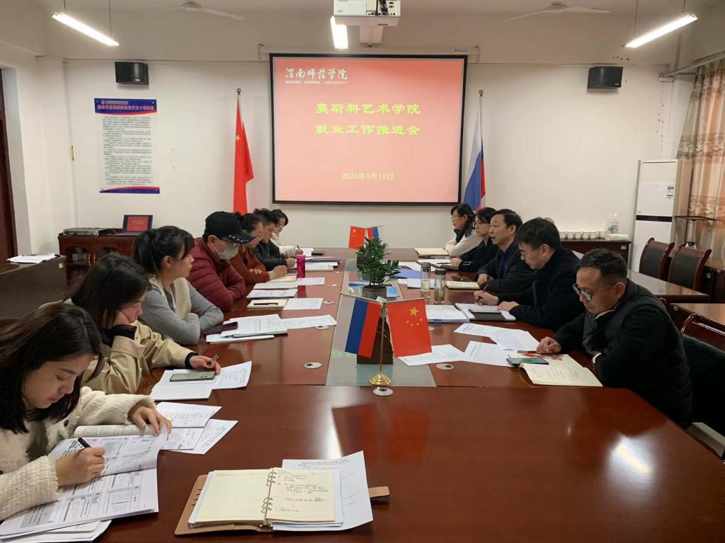 3月18日上午,莫斯科艺术学院召开就业工作推进会。分析学院当前毕业生就业情况,研究部署下一步阶段就业工作,全力推进我院毕业生就业工作落实落地,努力实现2024届毕业生高质量充分就业。
