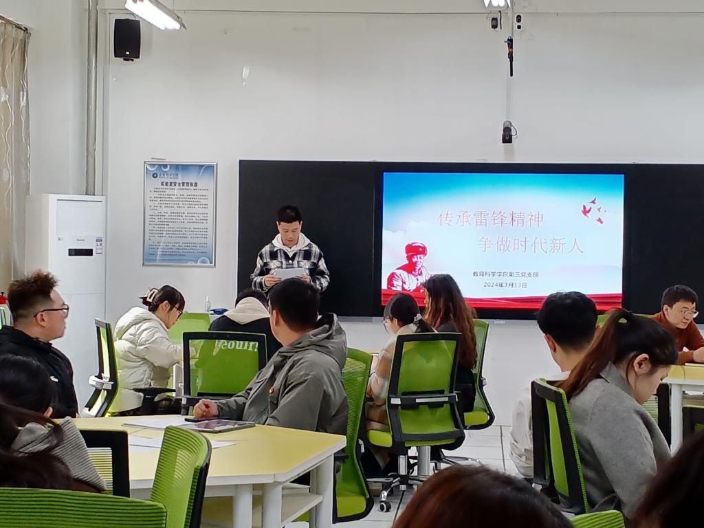 在集体学习中理解雷锋精神内涵。第三党支部组织师生党员集体学习习近平总书记关于弘扬雷锋精神的重要论述,观看了视频《习近平讲述的故事之雷锋精神》。通过理论学习,全体师生党员能够深刻把握雷锋精神的核心要义、鲜明特色、突出特征、深厚底蕴,为进一步发挥党员和先进典型示范带动作用,让学雷锋活动融入日常、化在精神,把雷锋精神代代传承下去奠定坚实基础。