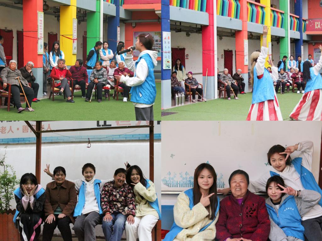 活动过程中,同学们有的为老人展示歌喉,唱起《映山红》《父亲》《小美满》等动听的歌曲,有的在院内带老人翩翩起舞,为老人们表演中国舞《予君书》,还有的为老人们带来了激情满满的诗朗诵《我爱这红彤彤的中华红》等。两小时的志愿活动很快过去,大家合影留念,同学们和老人一一告别。至此,活动圆满结束。