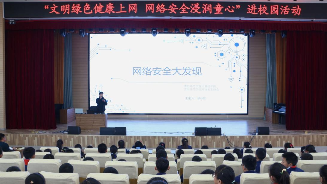 在活动中,网安社团负责学生晏传博作了题为“网络安全大发现”的专题讲座,主要从国际国内网络安全现状、身边的网络安全隐患、网络安全防范及实例演示四部分给在座小学生进行详细讲解,并通过小游戏、一问一答等形式从网络游戏、网络诈骗、个人隐私保护等方面,对个人安全、网络信息安全等进行现场演示指导。