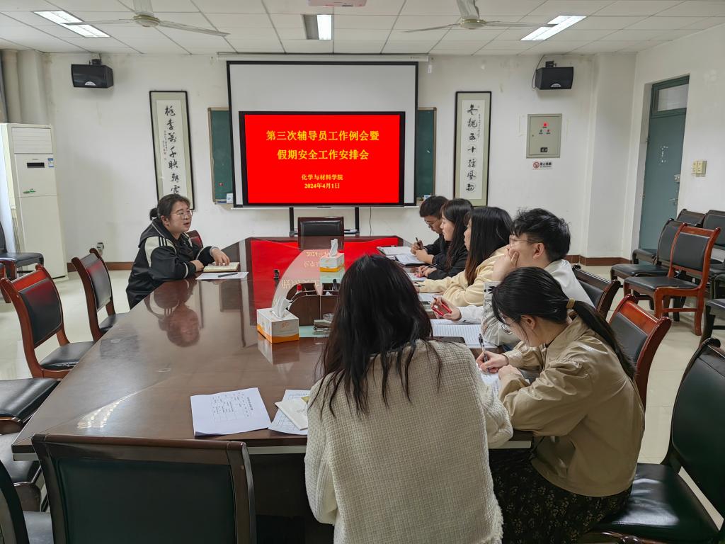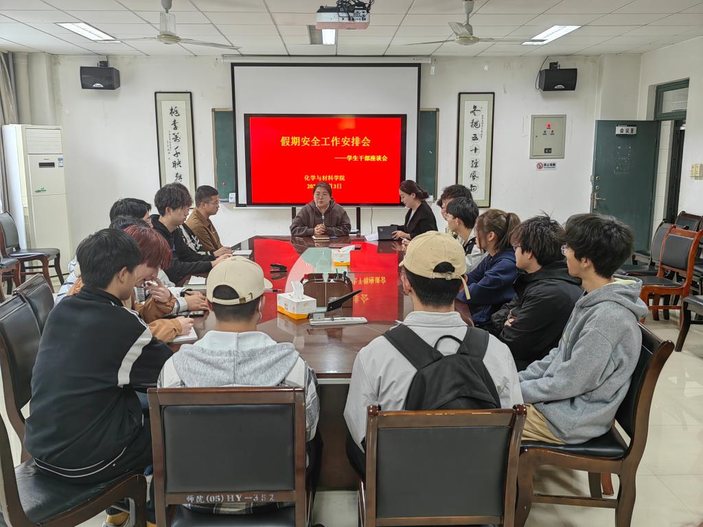 为做好清明假期期间学生安全工作,增强学生假期的安全意识,提高我院学生自我防护能力。4月1日至3日,化学与材料学院通过召开辅导员工作会议、班长座谈会、主题班会等多种方式,开展清明假前学生安全教育工作。