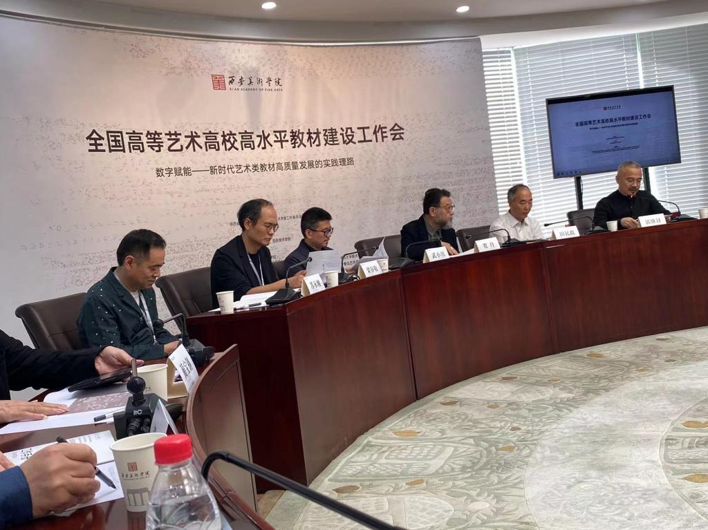陕西省教育厅教材处田民政处长强调,为深入贯彻习近平新时代中国特色社会主义思想和党的二十大精神内涵,学习领会习近平总书记关于教材工作的重要指示精神,坚持立德树人的根本任务,充分发挥教材铸魂育人的功能,强化思政教育对教材建设的引领,依托双一流学科和学校专业优势,积极运用数字新技术打造校本特色教材,建设公共基础课程教材、专业核心课程教材、适应国家发展战略需求的相关学科紧缺教材以及具有地域特色的高水平教材,系统推动全国高等艺术院校教材建设的整体布局与管理,切实提高艺术高校教材建设整体水平,提高艺术学教材建设育人效能,提升教师编撰出版优质艺术学教材的主动性与积极性,为全国高等艺术院校高水平教材建设再上新高度做出贡献。