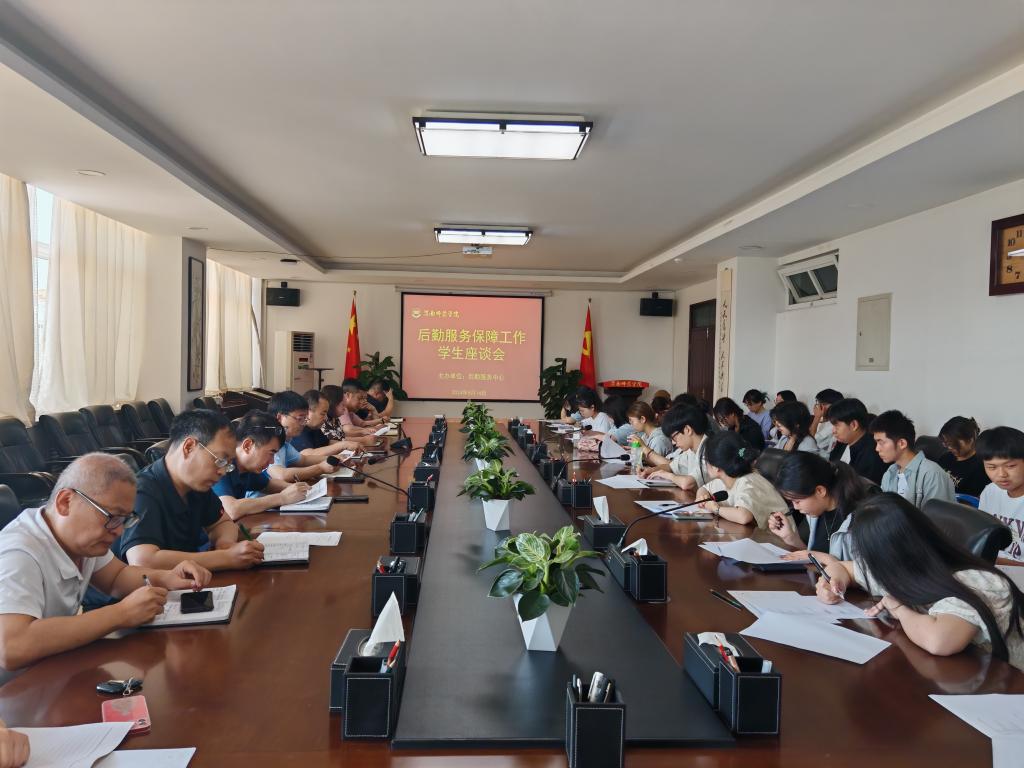 5月14日下午,学校党委委员、副校长常青林在厚德楼第二会议室组织召开了后勤服务保障工作学生座谈会,后勤服务中心党总支书记席景奇、主任王争辉,副主任雷建平、张菊红,各科室负责人及校学生会“青年之声”提案委员会43名委员代表参加了座谈会。座谈会由后勤服务中心主任王争辉主持。