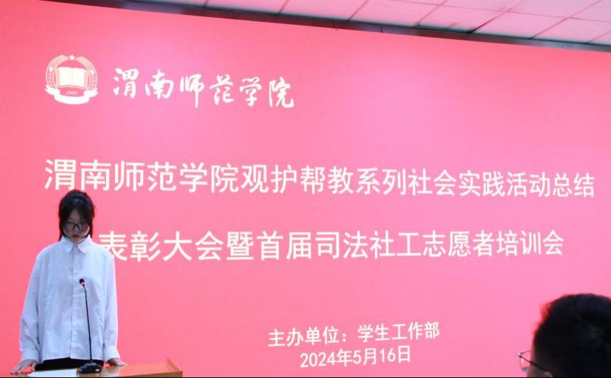 5月16日下午,学校召开观护帮教系列社会实践表彰暨首期司法社工志愿者培训会。会议由大学生心理健康教育指导中心专职教师谭凤娥主持。