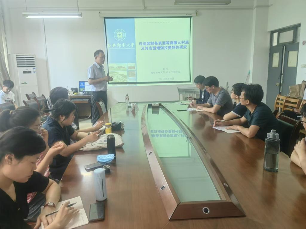 董教授根据自己多年来从事科研的经验,针对表面增强光谱学研究领域的一些问题作了详细的介绍,通过采用蒸发自组装等方法,制备得到拉曼活性优异的增强衬底,实现对福美双等探针分子的原位检测,并证明了采用自组装方法所制备的表面等离激元衬底具有优异的表面增强拉曼散射(SERS)活性,在生物传感器和生物检测方面具有潜在的应用价值。报告结束后,董教授就研究生招生以及学科建设方面的问题与我院师生进行了广泛的互动交流。本次报告为学院推进2026年电子信息专业申硕提供了有益的指导。