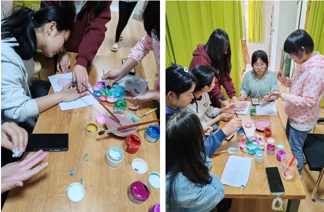 4月28日,开展“齐动手·共添彩”宿舍彩绘文化活动,通过富有趣味性的拓手印游戏,激发宿舍成员的团队协作精神,强化舍友间的紧密联系与深厚情谊。