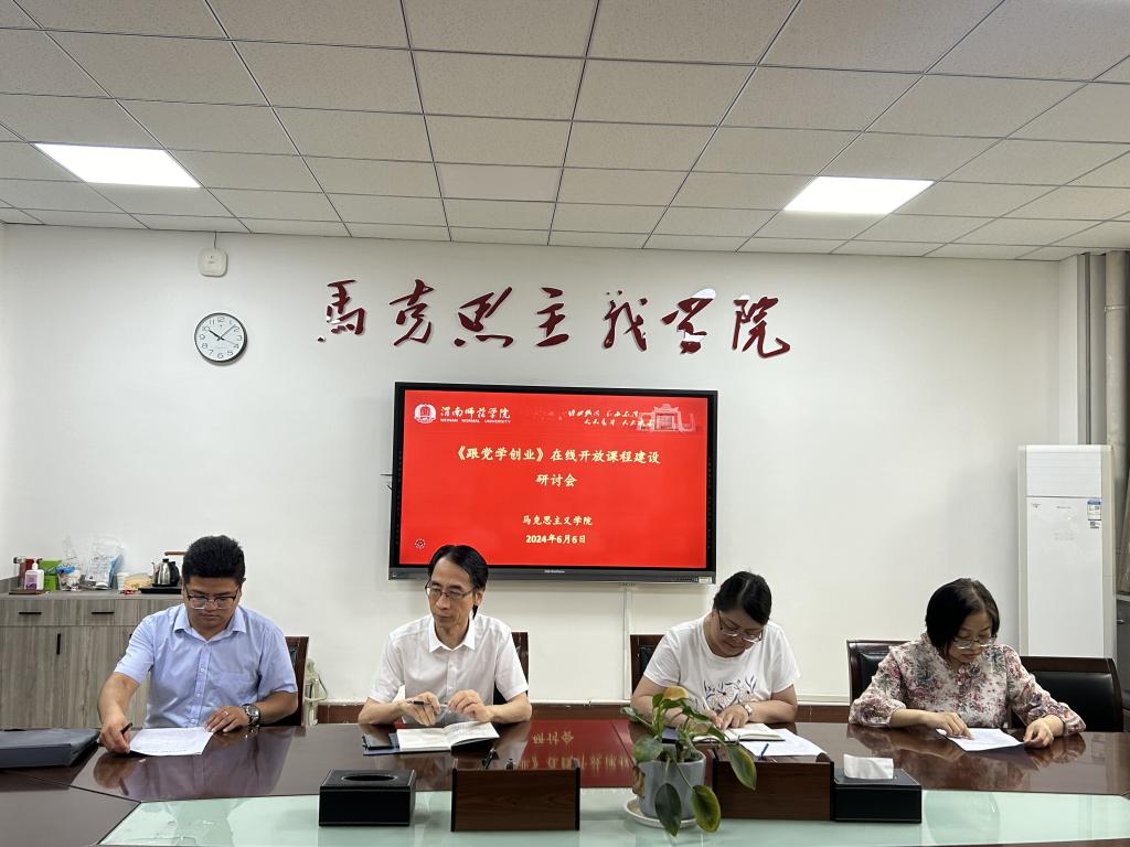 6月6日上午,学院在1218会议室召开省级在线开放课程《跟党学创业》建设研讨会。课程组成员张萍、单剑峰、周菊芳参会,课程负责人杨飞洋主持。
