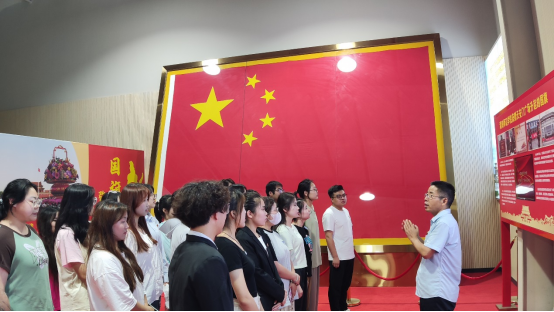 活动期间,党史231班李鹏涛等8名学生以《清澈的爱,只为中国》等为题在这面巨幅国旗下抒发了学院学生、当代青年的爱国情、报国志。