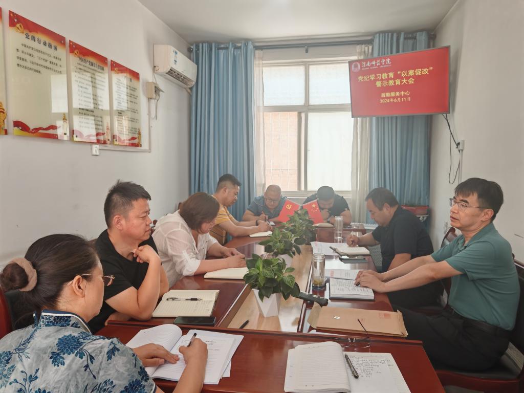 6月11日,后勤服务中心党总支召开党纪学习教育“以案促改”警示教育大会,会议由后勤服务中心党总支书记席景奇主持,副科级以上干部参加学习。