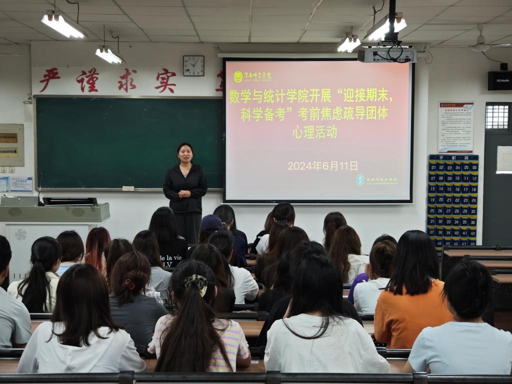 6月11日晚,数学与统计学院开展“迎战期末 科学备考”经验交流分享心理团辅活动,由心理专干马岩主持,部分学生代表参加。