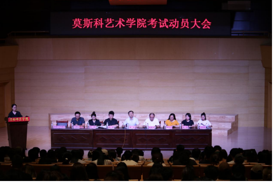 6月16日晚,莫斯科艺术学院在逸夫楼音乐厅召开考试动员大会。党总支书记孟波、执行院长殷晓克、党总支副书记叶晓燕、办公室主任高晶、外事秘书韦宁宁、学工办副主任段菲、专业负责人石洁、刘禀乾、教务秘书刘冉冉、全体辅导员及2023级、2022级全体学生、2021级部分学生干部共计500余人参加,会议由叶晓燕主持。
