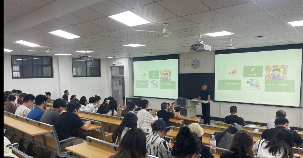 小柿人文化传媒有限公司负责人王默以《城市IP小柿人——助推产业经济发展》为题从项目背景、市场分析、营销计划、产品介绍、团队介绍、公司荣誉等方面介绍了公司发展情况。她从自身经验出发为同学们提出观者思维、顺势而为、行动力一定要强三点建议,并鼓励同学们不怕犯错,大胆去做。