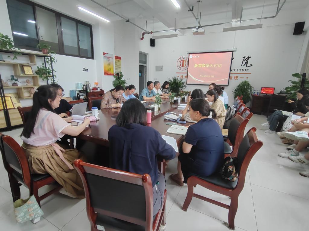 7月3日,传媒学院开展教育教学大讨论活动,全体教职工参会,会议由院长曹熙斌主持。与会教师就本学期教学工作进行交流,重点围绕教学管理、人才培养、教学成果、学科建设、课程思政等方面提出意见建议。