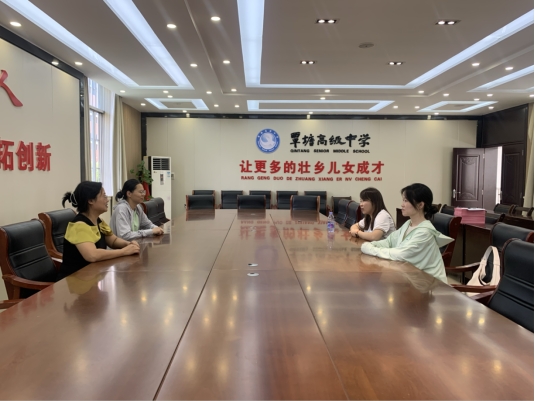 上林县城关中学校长邱克武,副校长樊新武,校团委副书记韦洋梅和校友代表蓝杰出席在校举行的座谈会。邱克武对学院一行的到来表示欢迎,他介绍了学校的基本情况,希望我校能继续为上林县输送更多紧缺学科教师和高层次教育人才,进一步缓解当地中小学教师紧缺情况,不断促进上林县教师队伍质量的稳步提升。蓝杰在座谈会上表达了对母院培养的感激之情,表示将一如既往继续关心母院,竭尽所能为母院建设发展贡献力量。