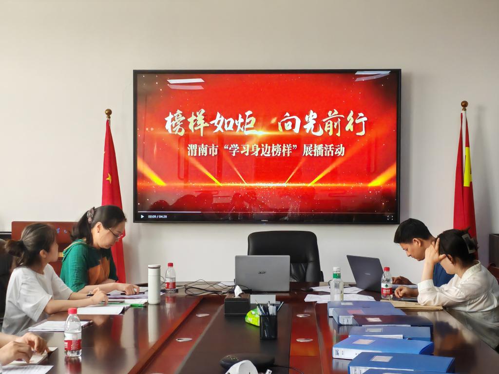 7月11日下午,传媒学院党总支在朝阳校区5406会议室开展主题党日活动,组织全体教职工观看“榜样如炬 向光前行”渭南市“学习身边榜样”展播活动,学习身边榜样,汲取奋进力量。