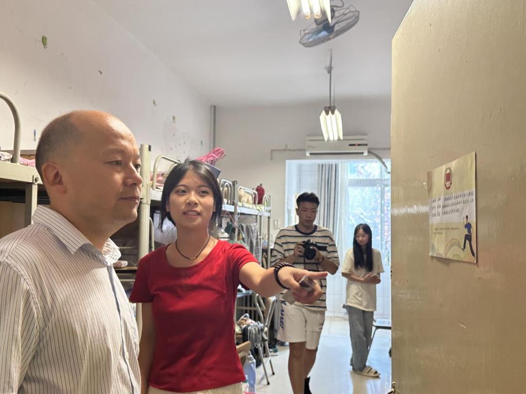 田超一行还对新生宿舍进行了设施安全检查工作。经排查,新生宿舍整体情况良好。