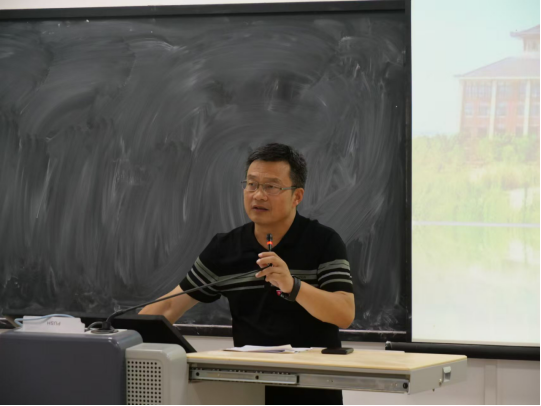 9月18日下午,传媒学院2024级全体新生在教学楼138教室同上开学第一课,学院党政领导班子成员讲授“开学第一课”。党总支副书记周双主持活动。