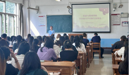 9月23日上午,经济与管理学院举行2024级专升本新生见面会。院党总支书记李富荣、院长袁梁、副院长石党英、副院长王留鑫、学工办副主任朱玉娜,辅导员蔡佳宁及全体2024级专升本新生参加,会议由党总支副书记谢稷光主持。
