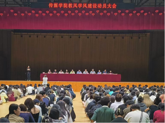 副院长侯君奕传达了学校《关于开展教风学风建设活动的通知》精神,宣读《传媒学院校风学风建设月活动方案》。
