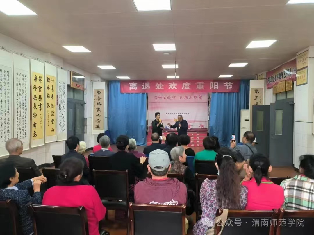 10月11日下午,离退休工作处举办“九九重阳节 浓浓敬老情”文艺演出,我校离退休职工欢聚一堂,共度重阳佳节。老同志表演的秦腔、眉户、太极拳、快板、歌曲、舞蹈等各类节目,精彩纷呈,舒展自如,离退处活动大厅里回荡着优美和谐的旋律。