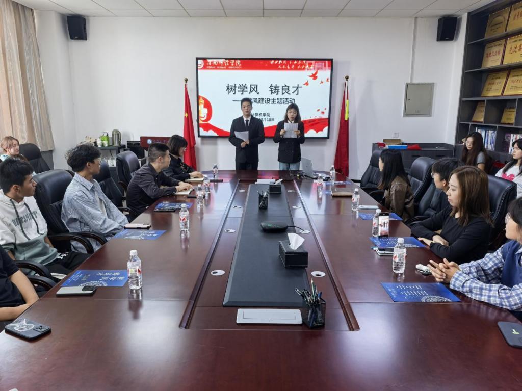 10月18日下午,计算机学院举行“树学风·铸良才”学风建设月主题活动。党总支副书记、副院长(兼)张俊娜,学工办主任李雷玮,全体辅导员及新生代表参加活动。