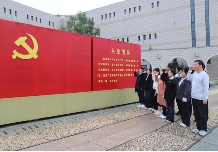 在延安革命纪念馆,师生党员跟随讲解员全面深入学习了中共中央在延安十三年领导全国革命走向胜利的光辉历史。面对鲜红的党旗,师生党员高举右拳、重温入党誓词,接受思想洗礼、叩问初心使命。