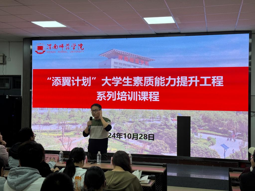 10月28日晚,学校举行“添翼计划”大学生素质能力提升工程培训活动。活动由学生资助管理中心主任张小苗主持。