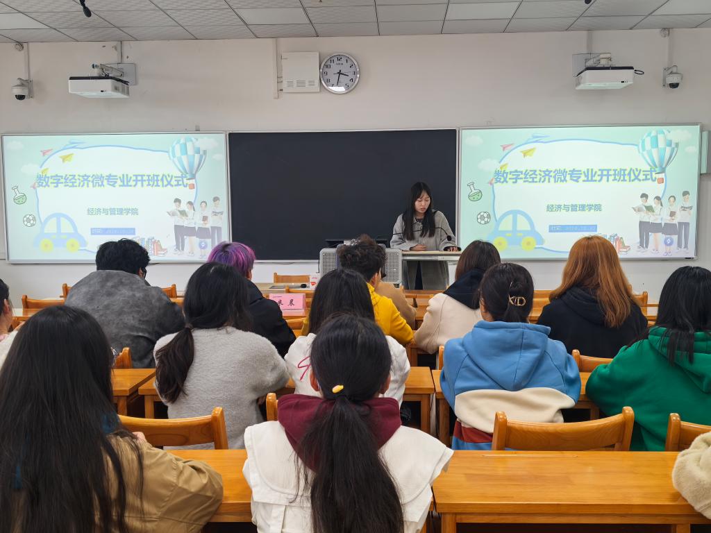 10月30日下午,经济与管理学院在富平校区1121教室举行了数字经济微专业学习开班仪式。开班式由数字经济微专业班辅导员米晨主持,副院长石党英及数字经济微专业修习学生参加会议。