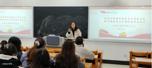 开班仪式上,王晶首先宣读《经济与管理学院党总支党校分校第78期入党积极分子培训班培训期间学习纪律和要求》,她强调,作为新时代的大学生,要深刻认识党的领导核心地位。入党积极分子培训是提升思想境界、增强政治素养的重要途径,希望每一位积极分子都能珍惜此次机会,认真学习党的理论知识,传承党的优良传统。