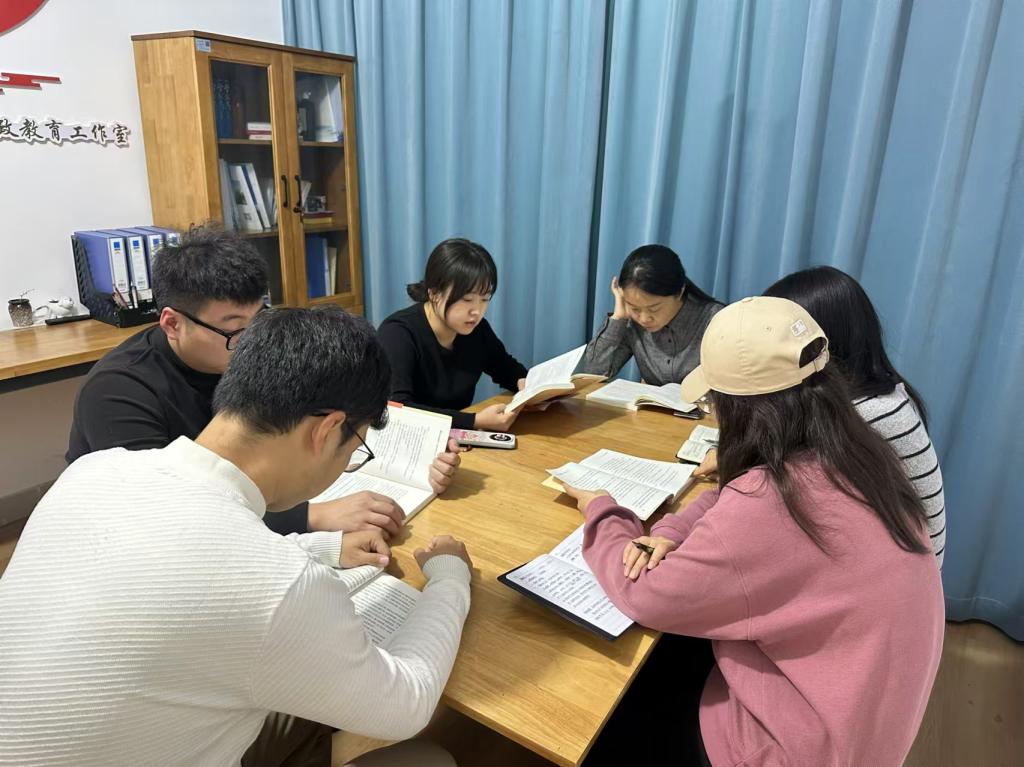 段菲领学徐川《顶天立地谈信仰——原来党课可以这么上》一书中今天再谈马克思、绕不过去的《共产党宣言》、顶天立地谈信仰等3章内容。随后辅导员就学习内容进行交流研讨。