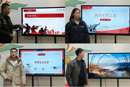 活动伊始,数字媒体技术专升本241班王冠斌、信息安全221班高迪、计算机科学与技术221班卜露馨、计算机科学与技术221班张琛鑫先后通过视频、照片等丰富的形式分享了自己服役期间的真实经历、内心感悟及入伍后的转变过程。